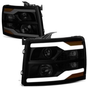 07-14 Chevy Silverado 1500 2500 3500 HD Headlights – Tinted Housing Amber Corner