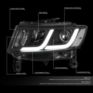 14-16 Jeep Grand Cherokee LED DRL Projector Headlights – Black Housing Clear Corner