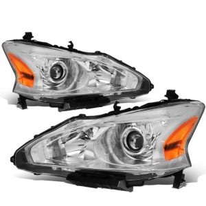 13-15 Nissan Altima Sedan Projector Headlights – Chrome Housing Amber Corner