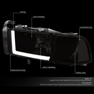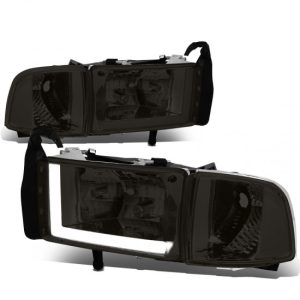 94-02 Dodge Ram 1500 2500 3500 LED DRL Headlights – Smoked Housing Clear Corner