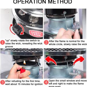 Efficient Kerosene Heaters for Indoor Use, Stainless Steel Indoor Heater Non Electric, Kerosene Stove Camping with 4 Wicks 2 Pairs of Gloves, for Boiling Water Heating Cooking A