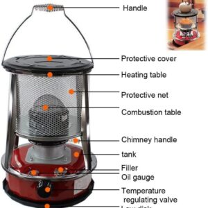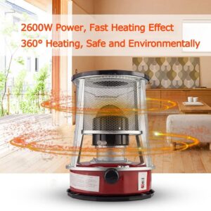 Lnder Portable Kerosene Wicks Heater Without Electricity Emergency Heaters Camping Stove Heating 9000 BTU/H Adjustable Flame Stainless Steel Kerosene Stove (Size : 4.6L/Red)
