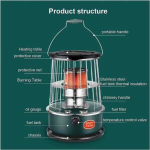 Portable Kerosene Heater, Large Capacity Indoor Burner, Green Outdoor Portable Heating Stove, Adjustable Firepower