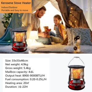 Portable Heating Stove Kerosene Stove, Multifunctional 4.5L Camping Stove Heater, 7800 BTU/H, High Efficiency Kerosene Burner, About 15~17 Hours, Suitable for Indoor Outdoor