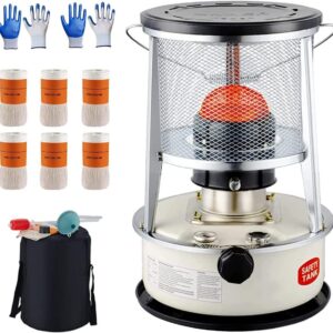 Portable Kerosene Heater for Indoor Use Keroscene Heaters Stainless Steel Indoor Heater Non Electric, Kerosene Stove Camping with 2 Wicks 2 Pairs of Gloves-6L A
