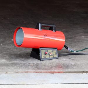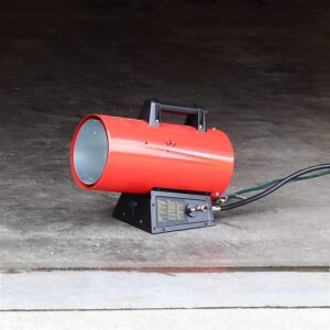 Sunnydaze 125,000 BTU Forced Air Propane Heater – Portable Heat for Construction Sites – Auto-Shutoff for Overheating Protection – Adjustable Heating Output – Piezo Ignition – Red and Black