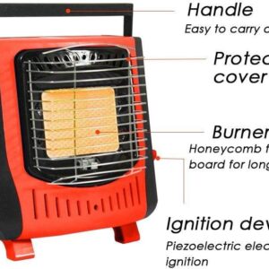 WANGLE Dual Fuel Propane or Butane Portable Heater, Adjustable Outdoor Gas Heating Stove, Personal Space Heater with Handle for Camping