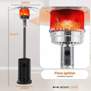 VICXYY Propane Space Heater – 46,000 BTU 87 Inches Tall Premium Outdoor Patio Heater with Piezo Ignition System Rapid Heating, with Wheels, Protective Cover for Commercial & Residential – Black