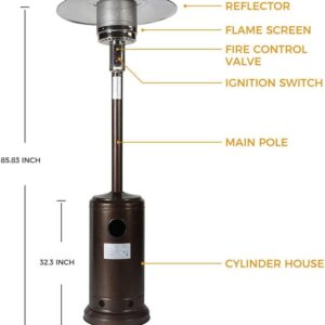 46000 BTU Garden Patio Mushroom Heater with Two Wheels, Commercial Propane Outdoor Heater, 86 Inches Tall Standing with Cover, with Hose Set, Hammered Bronze Powder Coated Iron Finish