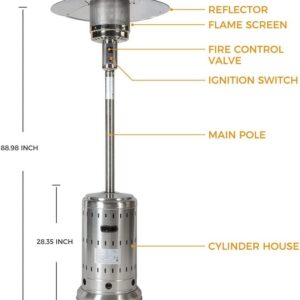 46000 BTU Stainless Steel Outdoor Propane Patio Mushroom Heater with Two Wheels, Floorstanding Portable Patio Yard Heater with Round Side Table, Stainless Steel, Commercial & Residential