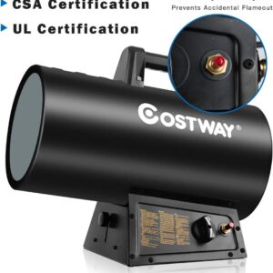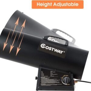 COSTWAY Propane Heater, 60000 BTU Propane Forced Air Heater, Heat Output, Overheat & Cut-off Protection, Portable Gas Space Heater Suitable for Ventilated Warehouse Construction Site Workshop, Black