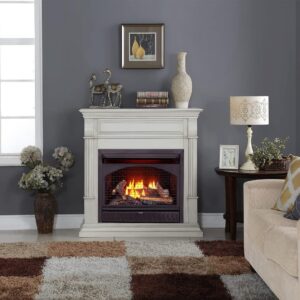 ProCom Dual Fuel Vent Gas Fireplace System – 26,000 BTU, T-Stat Control, Antique White Finish – Model# FBNSD28T-2AW