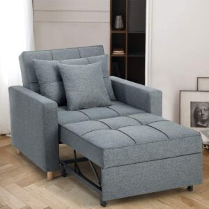 Esright Convertible Chair Bed 3-in-1, Sleeper Chair Bed, Multi-Functional Adjustable Recliner, Sofa, Bed, Single Bed Chair with Modern Linen Fabric, Dark Gray