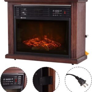 Giantex 28″ Standing Electric Fireplace 1500W Glass View Log Flame Remote Home Space Heater