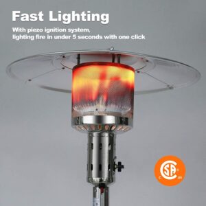 48000 BTU Outdoor Patio Propane Heater, 88in Tall Umbrella Outside Space Gas Heater with Wheels, Standing Tainless Steel Patio Floor Air Heater, for Commercial, Residential, Garden, Porch, Party, Deck