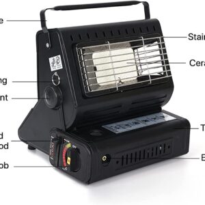 LIUD Camping Heater for Tents Ceramic Heater Portable Heater Propane Butane Stove Indoor Use Gas Heaters for Fishing Camping Hiking Patio /10x9x8inch (Color : Black)