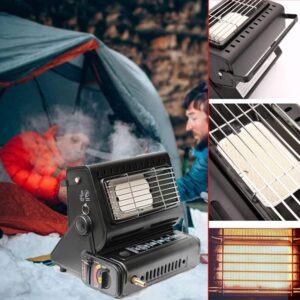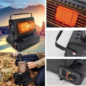 LKP 2 in 1 Butane Heater & Stove, Camping Heater Ceramic Warmer for Outdoor, Camp Tent Gas Stove, Tent Warming, Fishing Hiking Patio Space Heater (Color : Black)