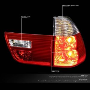 00-06 BMW X5 Rear Brake Tail Lights – Inner+Outer Lamps – Red/Clear Lens