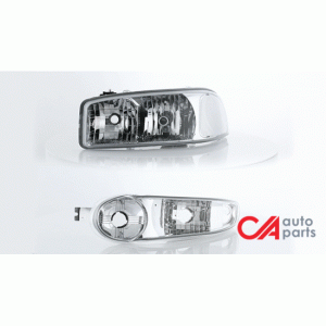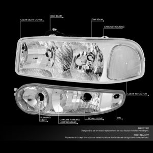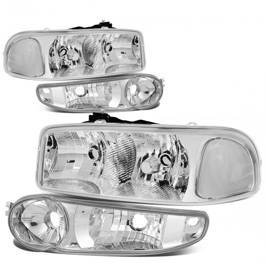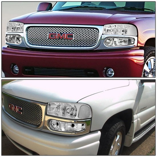 01-07 GMC Sierra Yukon XL 1500 Denali Headlights+Bumper Lamp – Chrome Housing Clear Corner