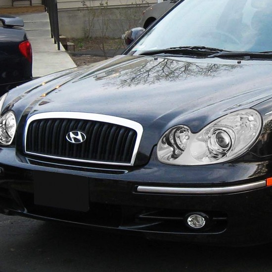 02-05 Hyundai Sonata Projector Headlights – Chrome Housing Clear Corner