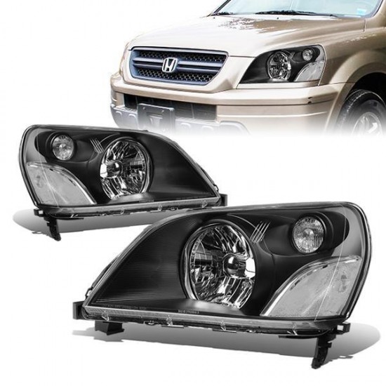 03-05 Honda Pilot Headlights – Black Housing Clear Corner