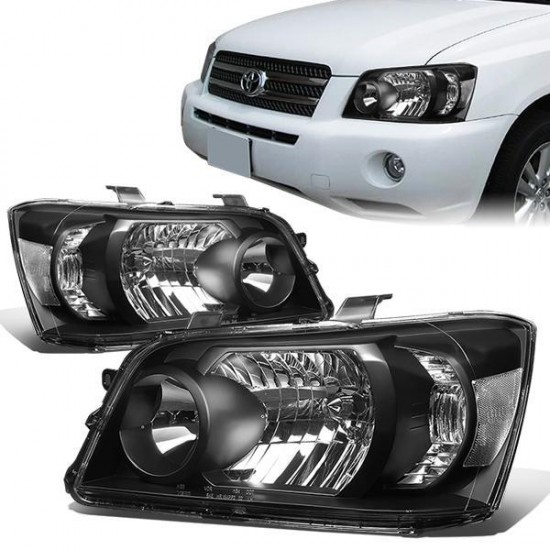 04-06 Toyota Highlander Headlights – Black Housing Clear Corner
