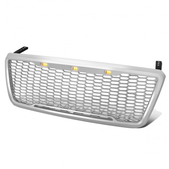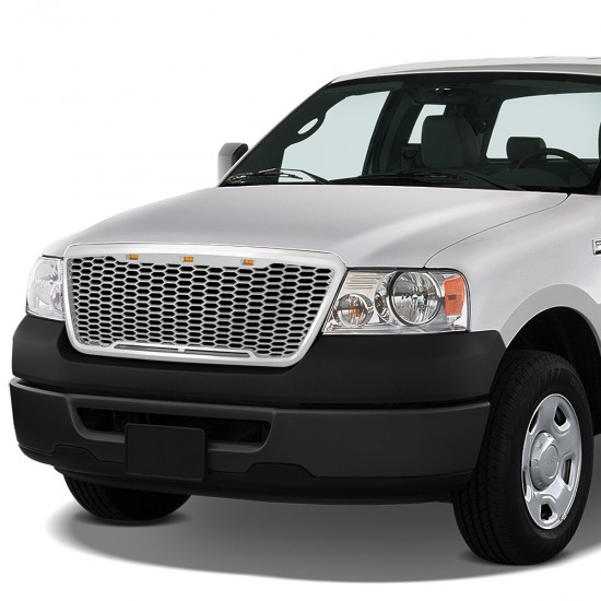 04-08 Ford F-150 Front Grille+LED – Badgeless Honeycomb Mesh – Chrome