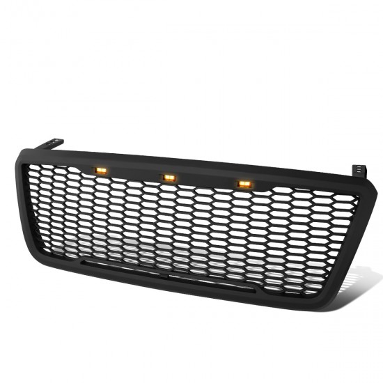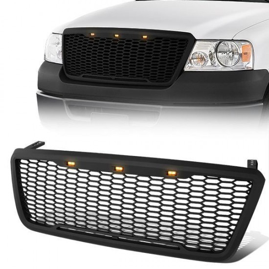 04-08 Ford F-150 Front Grille+LED – Badgeless Honeycomb Mesh – Matte Black