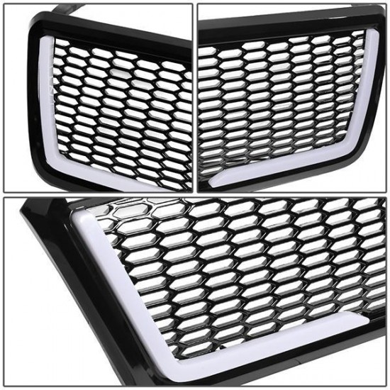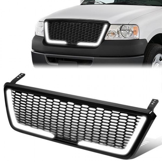 04-08 Ford F150 Front Grille+LED Bar – Badgeless Honeycomb Mesh – Black