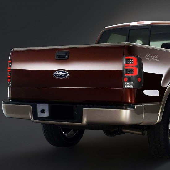 04-08 Ford F150 Lobo Dual Red C-Bar LED Rear Brake Tail Lights – Black Housing