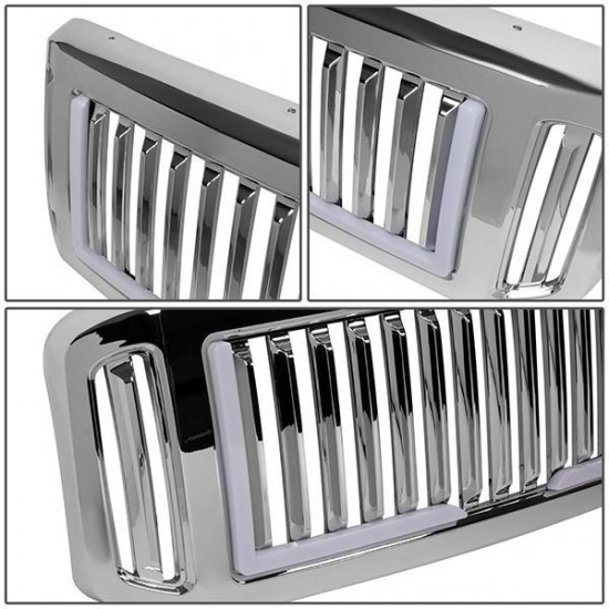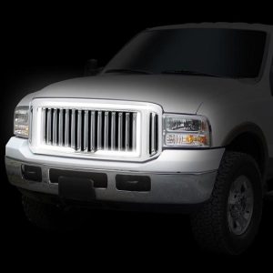 05-07 Ford F250 F350 F450 F550 Super Duty Front Grille+LED Bar – Vertical Style – Chrome
