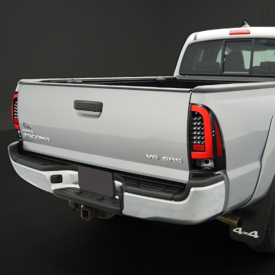 05-15 Toyota Tacoma LED Red Tube Bar Rear Brake Tail Lights – Black Housing