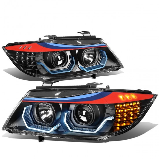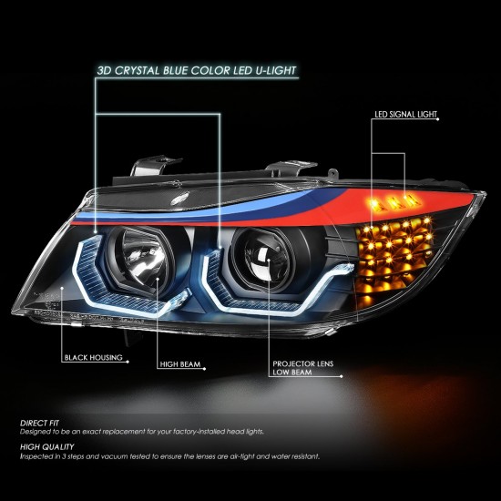 06-08 BMW E90 323i 325xi 325i 328i 328xi 330i LED U-Halo Projector Headlights – M-Style