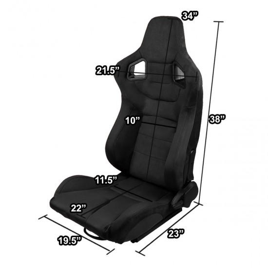 Racing Seats – Reclinable – Carbon Fiber – Faux Suede – Pair