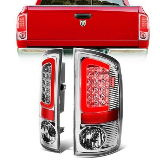 07-09 Dodge Ram 1500 2500 3500 Red C-Bar LED Rear Brake Tail Lights – Chrome