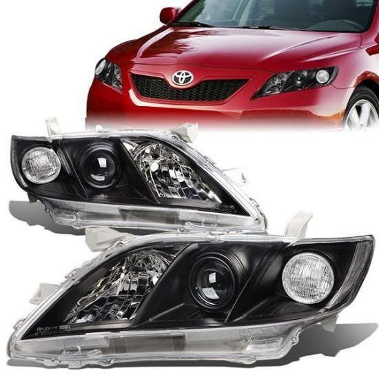 07-09 Toyota Camry CE/LE/SE/XLE Projector Headlights – Black Housing Clear Corner