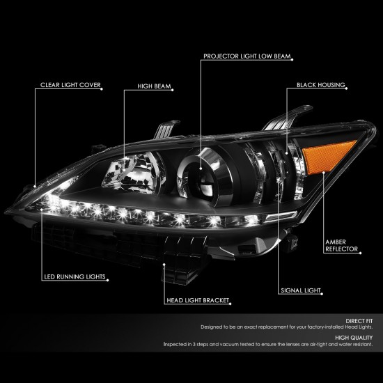 07-12 Lexus ES350 LED DRL Projector Headlights – Black Housing