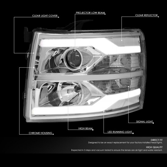 07-14 Chevy Silverado 1500 2500 3500 HD Dual LED DRL Projector Headlights