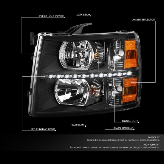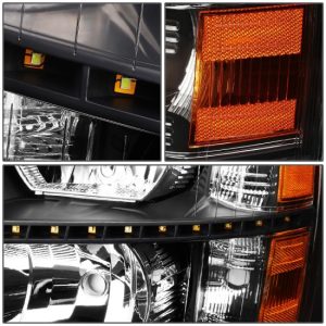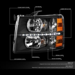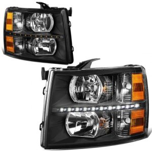07-14 Chevy Silverado 1500 2500 3500 HD LED DRL Headlights – Black Housing Amber Corner