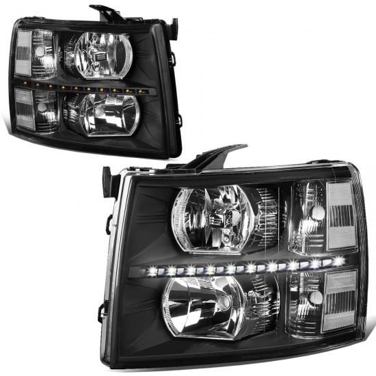 07-14 Chevy Silverado 1500 2500 3500 HD LED DRL Headlights – Black Housing Clear Corner