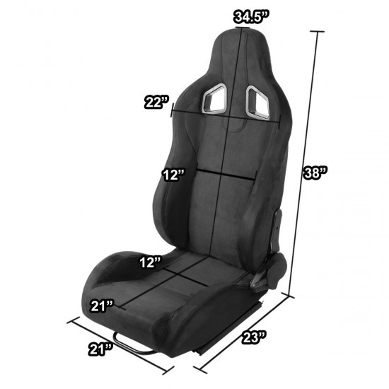 Racing Seats – Reclinable – Type-R Style – Faux Suede – Pair