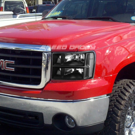 07-14 GMC Sierra 1500 2500 3500HD Headlights – Black Housing Clear Corner