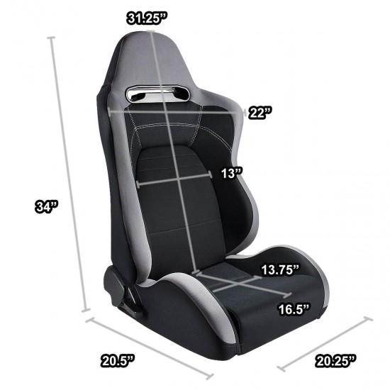 Right / Passenger Side Type-R Reclinable Fabric Cloth Racing Seat w/Universal Slider