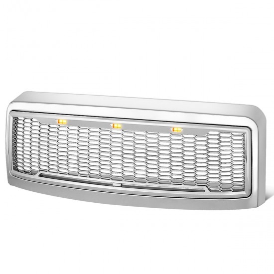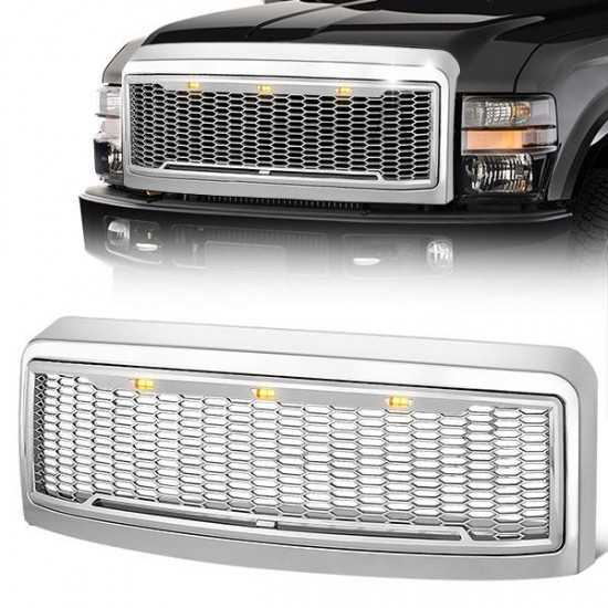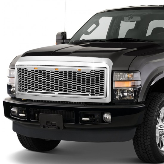 08-10 Ford F250 F350 F450 F550 Super Duty Front Grille+LED – Honeycomb Mesh – Chrome