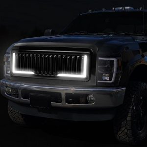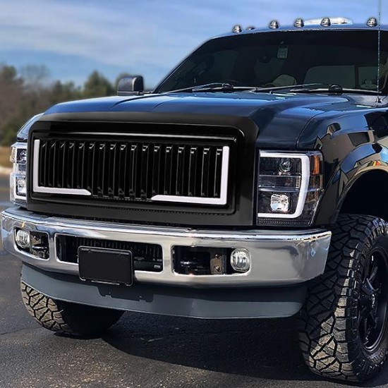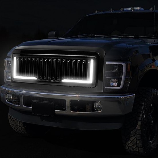 08-10 Ford F250 F350 F450 F550 Super Duty LED DRL Front Grille – Badgeless Vertical Fence Style