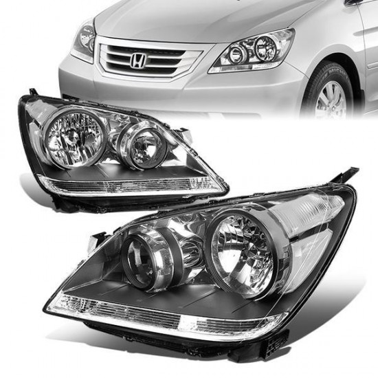 08-10 Honda Odyssey Headlights – Black Housing Clear Corner