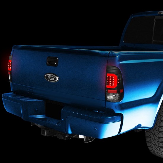 08-16 Ford F250 F350 F450 F550 Super Duty LED C-Bar Rear Brake Tail Lights – Black