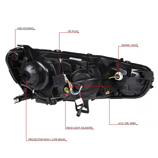 08-17 Mitsubishi Lancer Evolution X EVO 10 Projector Headlights – LED Sequential Turn Signal