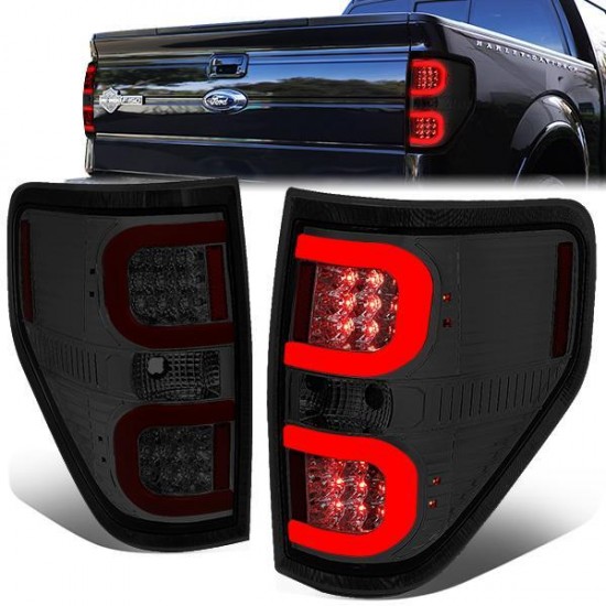 09-14 Ford F150 Dual Red C-Bar LED Rear Brake Tail Lights – Smoked Housing
