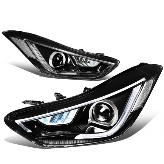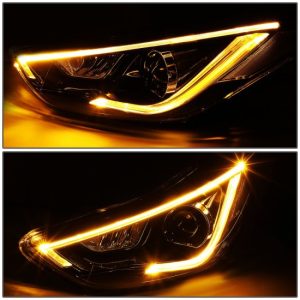11-13 Hyundai Elantra Sedan LED DRL+Turn Signal Projector Headlights – Black Housing